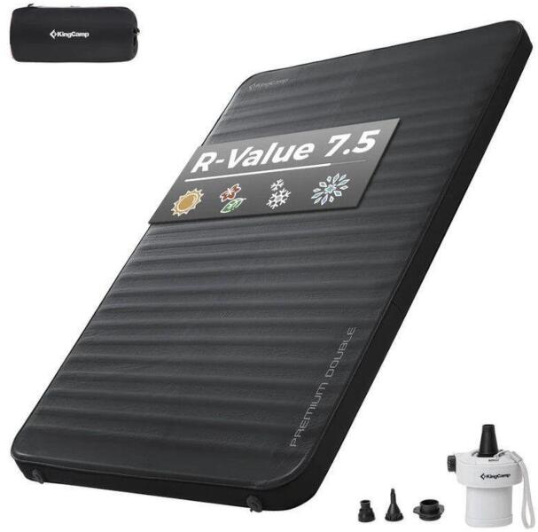 Két személyes, önfelfúvódó matrac 7,5 R-értékkel.